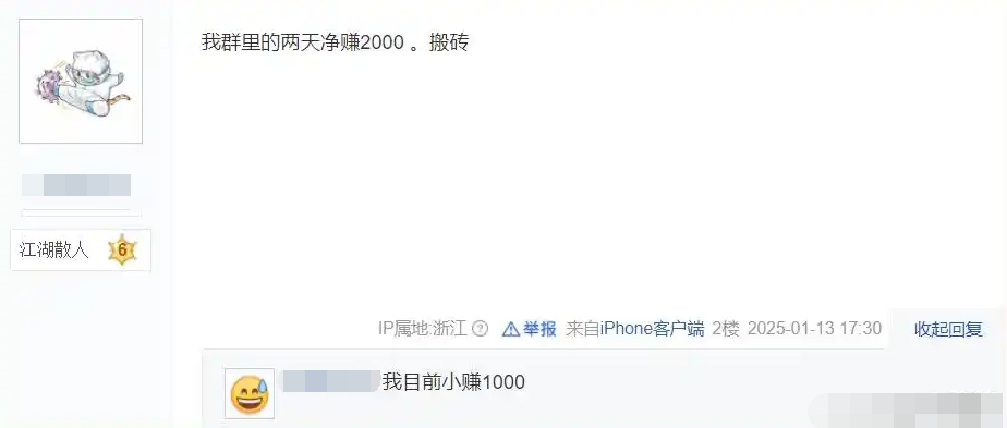 在游戏论坛中,可以看到大量类似小文的搬砖党,每日收益至少都在几十到上百不等。